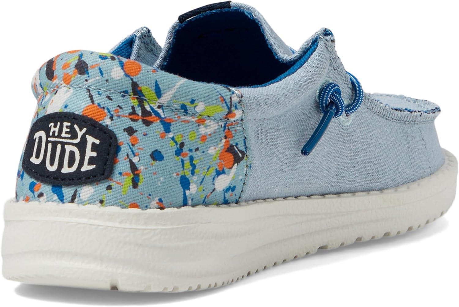 Hey Dude Kids Wally Funk Splatter: comfort, coolness, and fun in every step! These lightweight sneakers boast a bold splatter print that lets your child's personality shine. Soft, breathable canvas upper and a cozy cotton lining keep feet happy all day long, while the removable Memory Foam insole provides ultimate comfort. Elasticized laces ensure a snug, secure fit without the hassle of tying with leather insole, making them perfect for on-the-go adventures. The flexible rubber outsole offers superior grip, letting your little explorer conquer any terrain in effortless style.