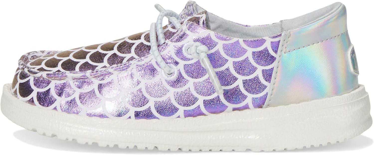 Introducing the playful yet functional Hey Dude Kids Wendy Iridescent Leo slip-on sneakers, designed to accompany your little adventurers through every twist and turn of their day. These vibrant shoes, with their colorful print canvas upper and branded heel tab, are a perfect blend of style and comfort, embodying the spirit of carefree exploration. Imagine your child slipping into these shoes effortlessly, thanks to the easy-on elastic laces that make getting ready a breeze. Whether they're skipping, running, or jumping, the lightweight EVA outsole ensures they stay comfortable and supported, while the removable memory foam cushioned insole provides a soft landing for every step. This insole not only enhances comfort but also minimizes sweating and odors, keeping their feet fresh and ready for any challenge. Crafted with a breathable cotton lining, these shoes ensure that feet remain cool and comfortable, no matter how active the adventure. The unique rounded toe design and Flex & Fold technology support healthy feet, offering complete freedom of movement, ideal for growing kids who need footwear that adapts to their energetic lifestyle. Perfect for school, playgrounds, or family outings, these shoes are tailored for kids who love to explore and parents who value quality. These slip-on sneakers are not just shoes; they are a gateway to endless adventures, making them a versatile addition to your child's wardrobe. Designed for both little kids and big kids, they cater to a wide age range, ensuring every child can experience the joy of Hey Dude's innovative footwear. Elevate your child's shoe game with these iridescent wonders, where style meets functionality, providing the ultimate shoe experience for adventurous souls.