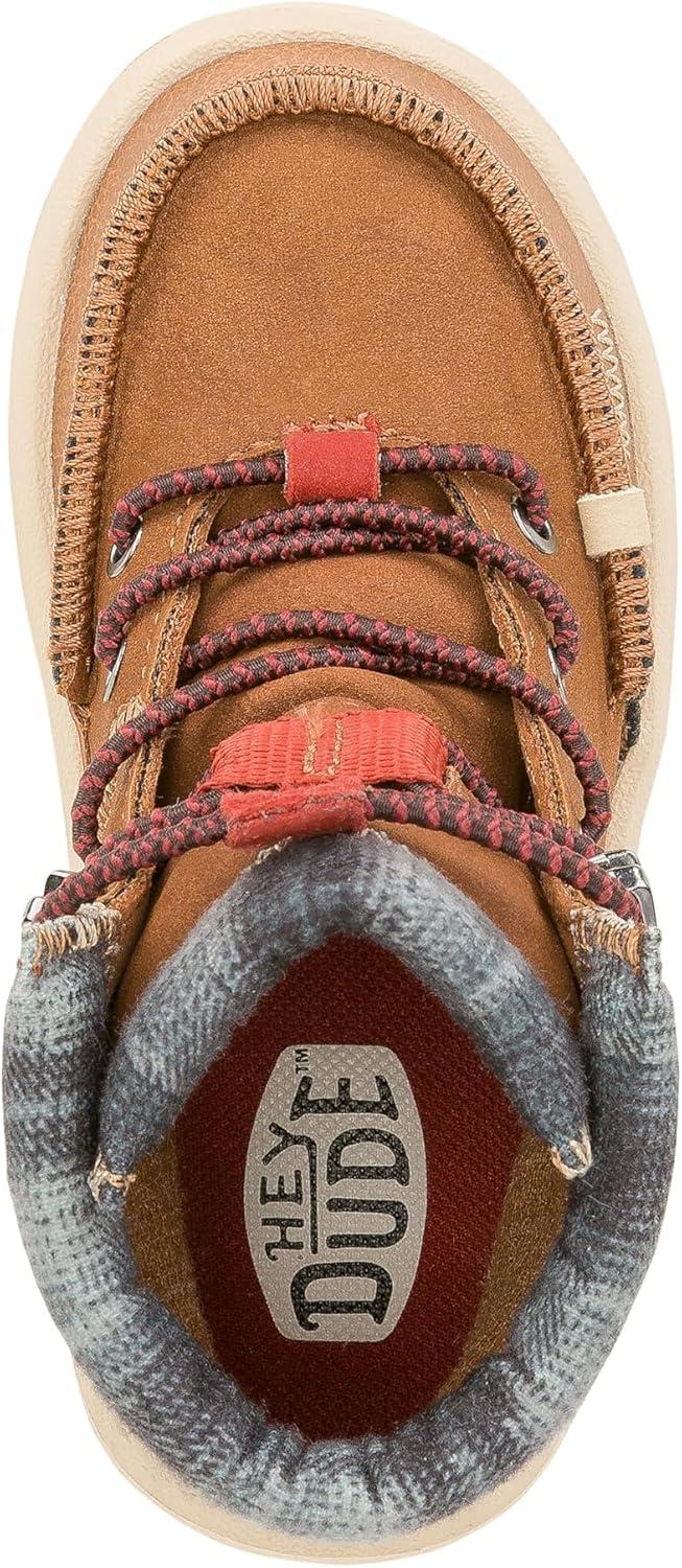 Step into comfort and style wearing Hey Dude Kids Bradley Classic! Crafted with premium leather uppers and lining, these shoes offer unparalleled durability and sleek style. The removable Memory Foam footbed ensures all-day comfort, while the ultralight and flexible textile outsole provides excellent mobility. Featuring a secure lace-up closure and ankle-high design, these shoes are perfect for active kids.