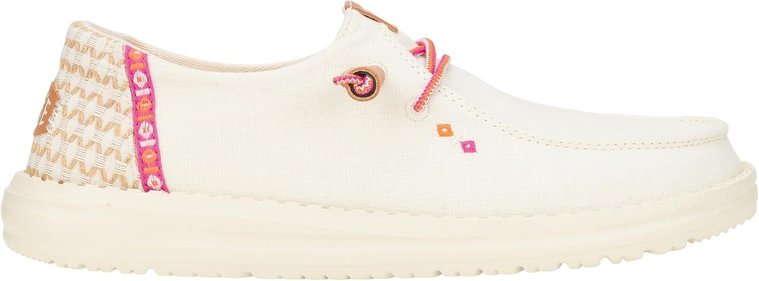 Hey Dude Women’s Wendy Chambray Boho | Women’s Shoe | Women’s Slip-On Shoe | Comfortable & Light-Weight(Natural/Pink)