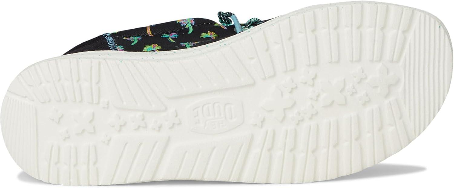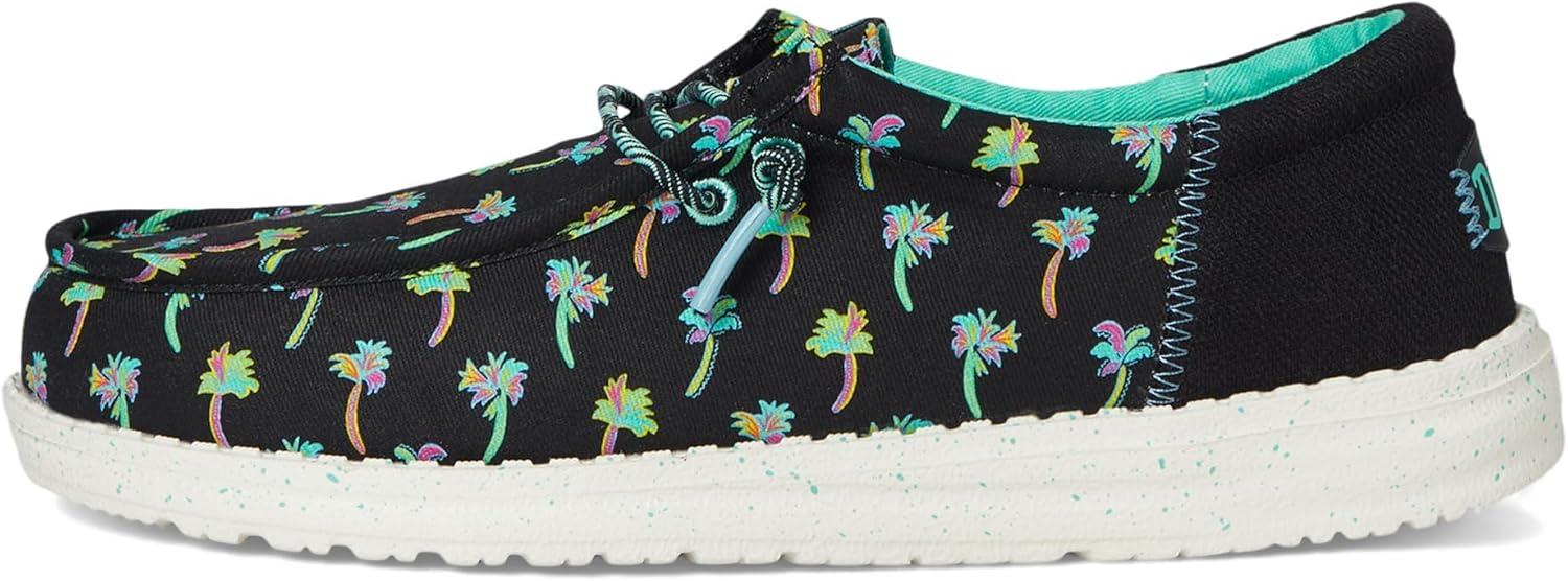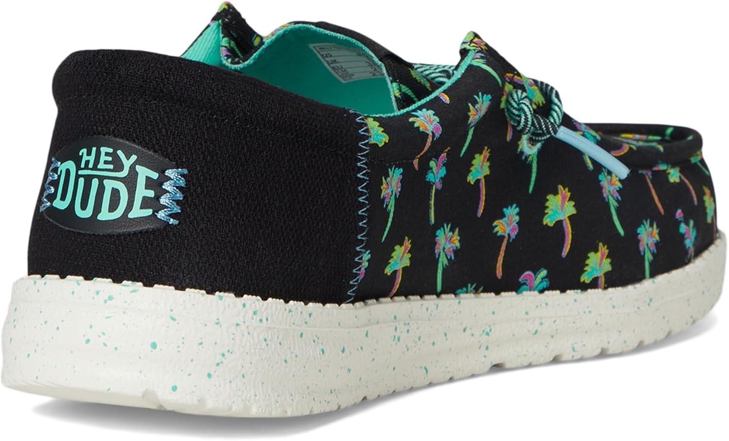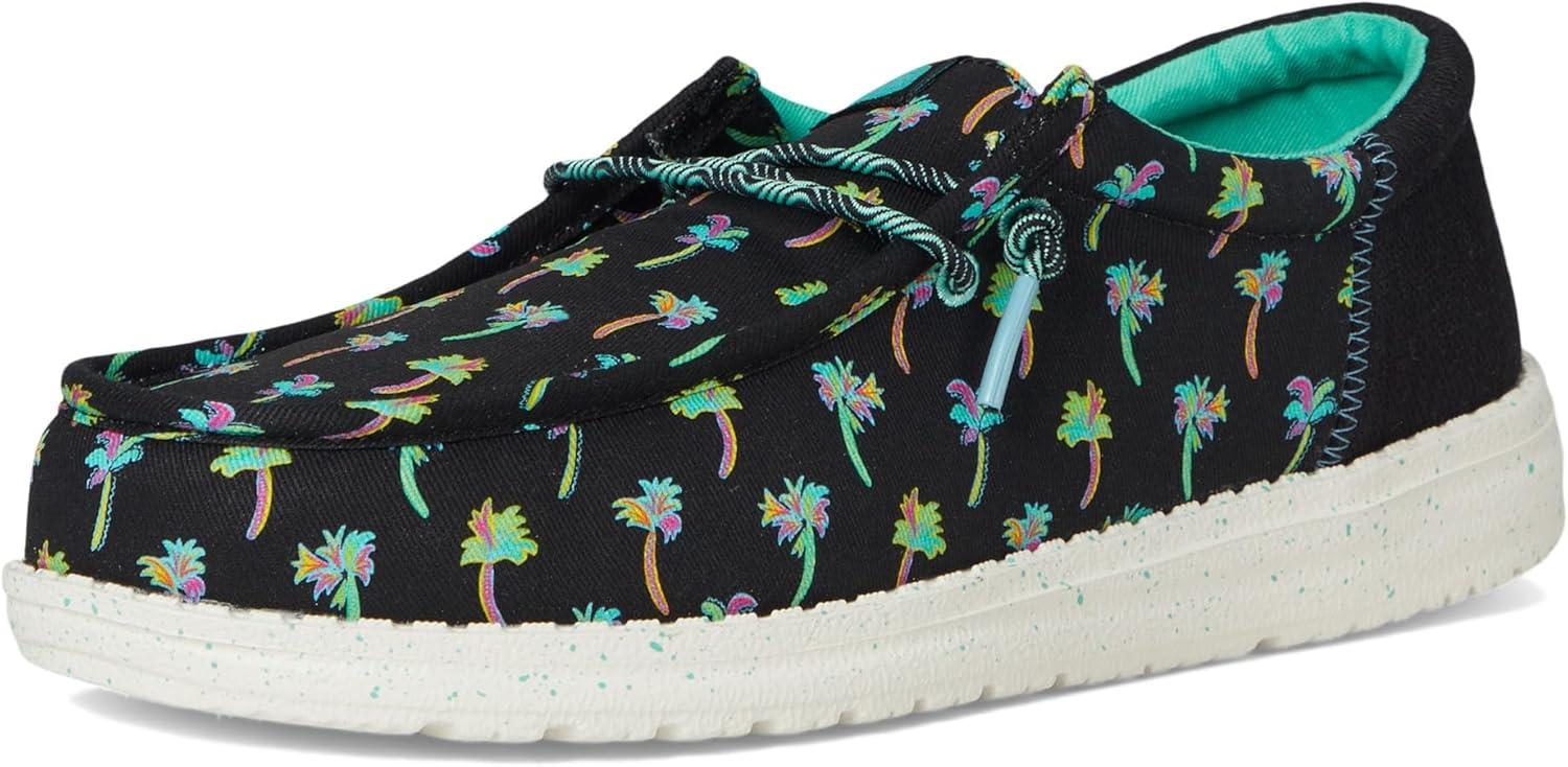 Easy, breezy, textile makes this Hey Dude Kids Wally Funk Tropical Palm slip-on sneaker ready to roam. Easy-on elasticized laces, EVA outsole, and removable insole provide go-to comfort. The removable memory foam cushioned insole provides maximum comfort and reduces sweating and odors. Flex & Fold technology: This supports healthy feet with its unique shape giving complete freedom of movement. Canvas upper and textile lining. Slip-on style. Allover tropical palm tree design. Branding on the tongue, footbed, and back heel tab. Low-top sneakers. Round toe design.