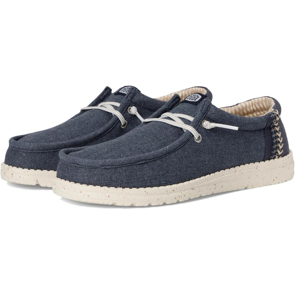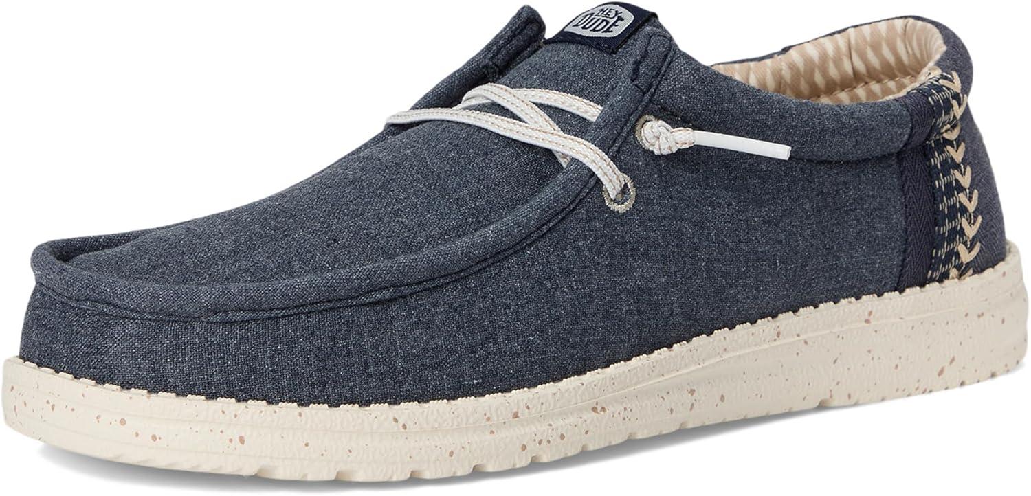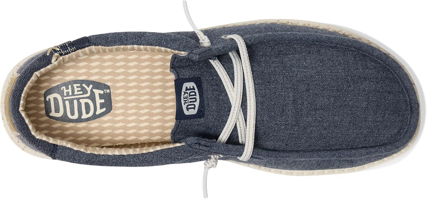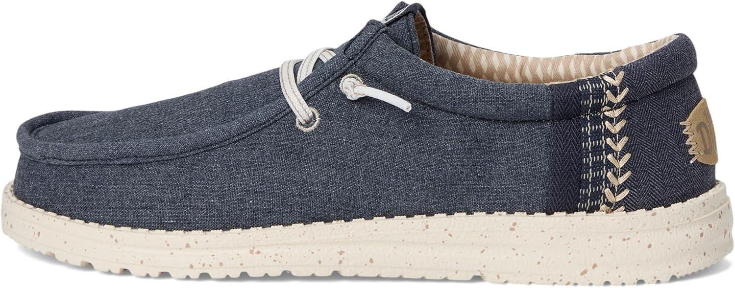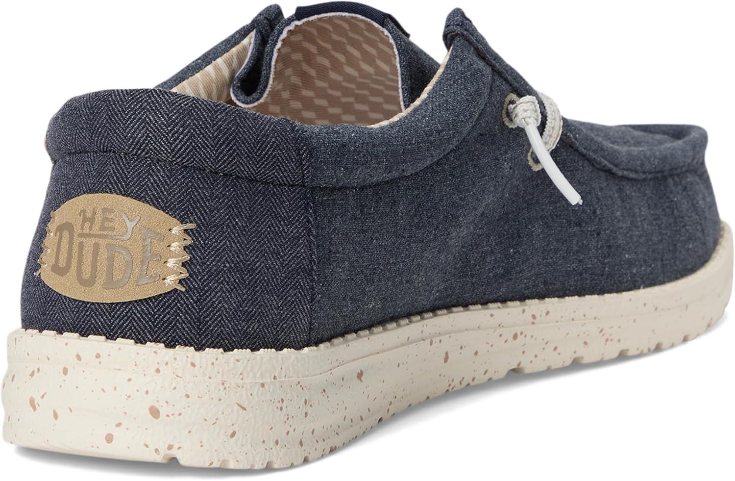 Easy, breezy, textile makes this Hey Dude Kids Wally Break Brushed Linen slip-on sneaker ready to roam. Easy-on elasticized laces, EVA outsole, and removable insole provide go-to comfort. Flex & Fold: This supports healthy feet with its unique shape, giving complete freedom of movement. Cotton upper and lining. EVA insole. Slip-on style. Branding on the footbed, tongue, and back heel tab. Round toes.
