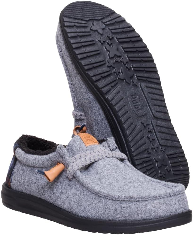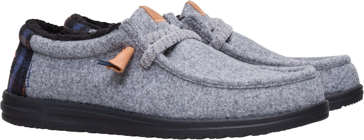 HEYDUDE Men’s Wally Cozy Plaid Downtown | Sherpa Lined Slip-On Loafers for Men, Lightweight & Comfortable(Smoke Grey/Multi)