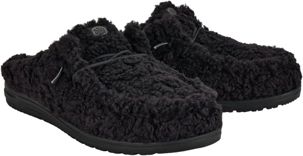 HEYDUDE Men’s Wally Cozy Slipper | Lightweight Men’s Slip-On Shoes | Comfortable & Casual Everyday Footwear(Black/Black)