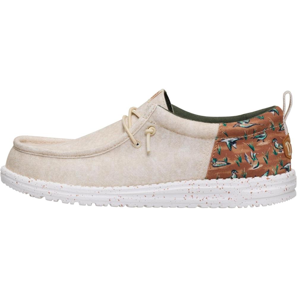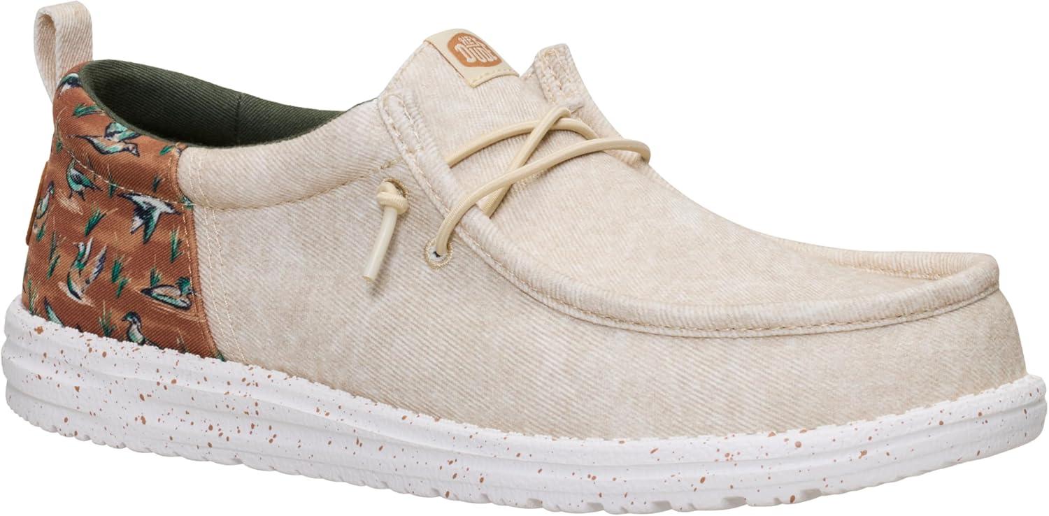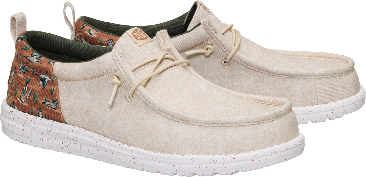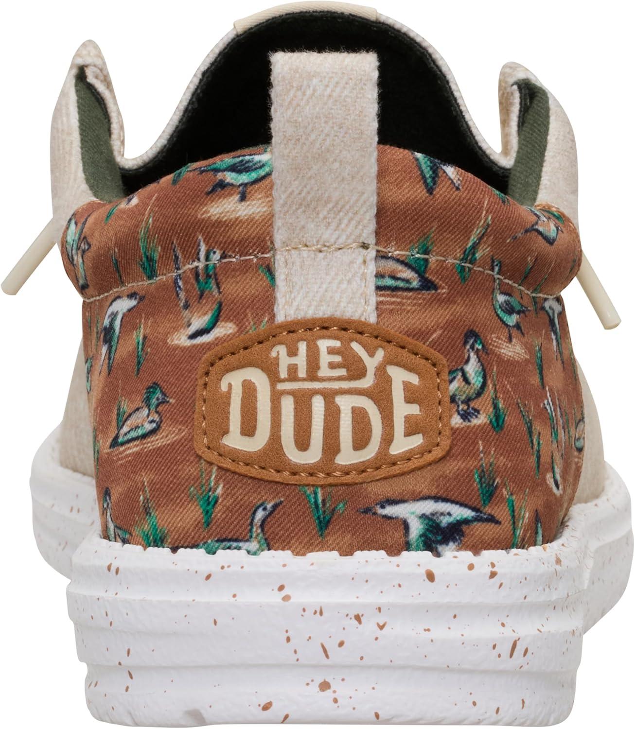 HEYDUDE Men’s Wally Funk Duck Print Slip-On Loafers | Lightweight, Comfortable Casual Shoes(Wood Ash/Multi)