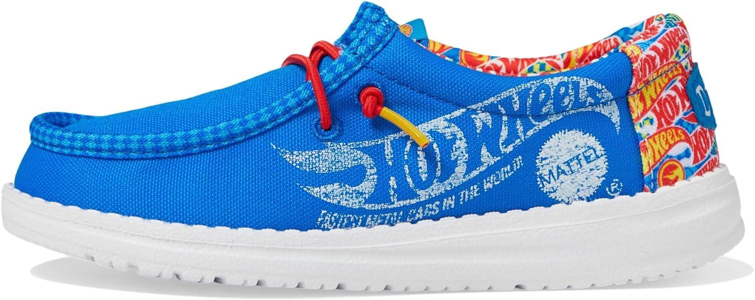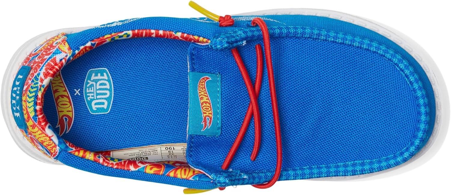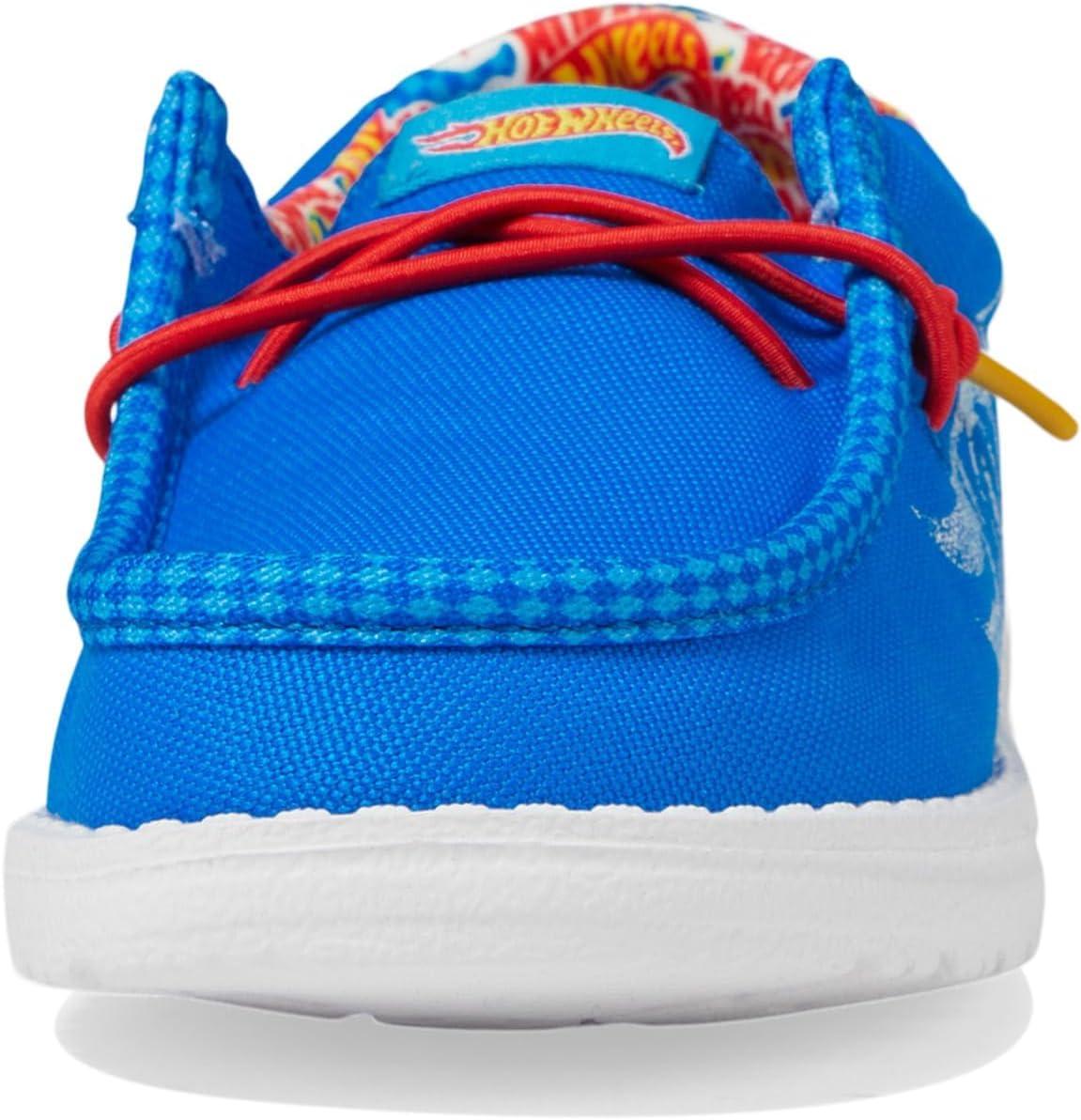 Give your feet the soft touch of comfort and you style statement a chic update wearing the Hey Dude Kids Wally Hot Wheels Loafers. The slip-on style loafers are designed with a canvas upper with elastic laces for a comfortable fit, a cotton lining, and cushioned leather insole. The rounded toe design with flex & fold supports healthy with its unique shape giving complete freedom of movement. Low-top design. Lightweight flexible rubber outsole.