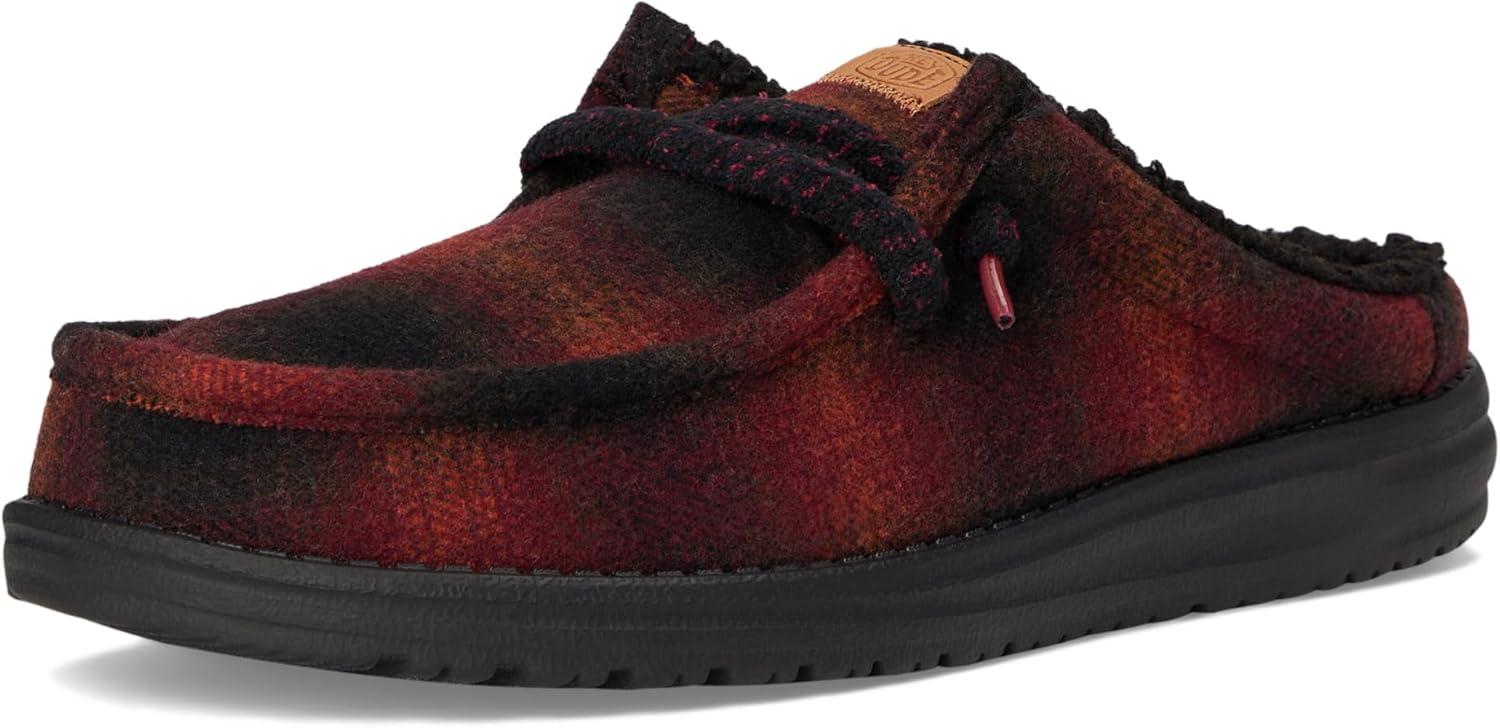 Easy, breezy, textile makes the Hey Dude Wally Slip Cozy Plaid Slip-On Sneaker ready to roam. Easy-on elastic laces, EVA outsole, and removable EVA insole provide go-to comfort. Plus, the textile & synthetic upper with allover plaid pattern adds an elegant touch. Flex & Fold supports healthy feet with its unique shape giving complete freedom of movement. Polyester lining. Round toe shape. Slip-on style.