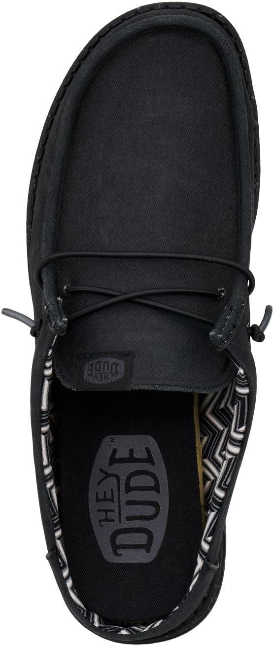 HEYDUDE Men’s Wally Slip Stretch Canvas | Men’s Shoes | Men Slip-on Loafers | Comfortable & Light-Weight(Canvas Black/Black)