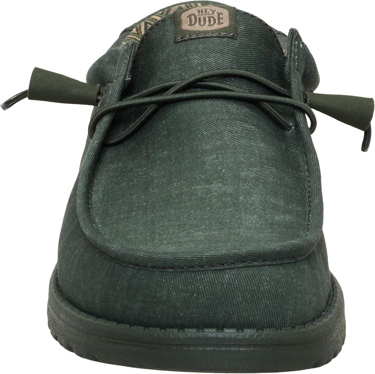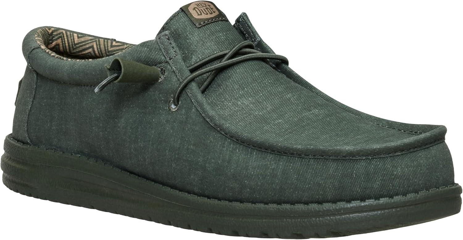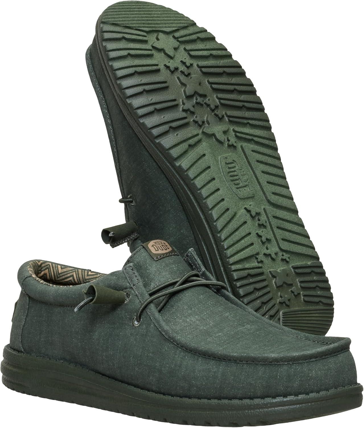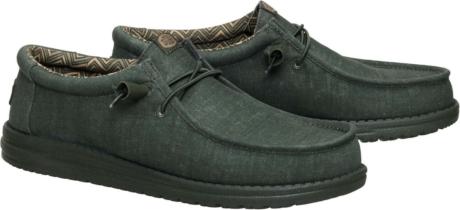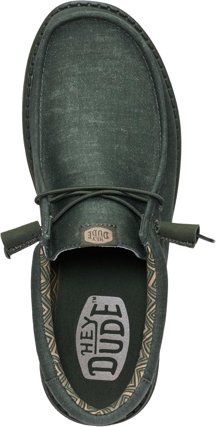 HEYDUDE Men’s Wally Stretch Canvas Loafers | Comfortable Lightweight Slip-On Shoes for Men | Casual Walking, Travel & Everyday Comfort(Deep Green)