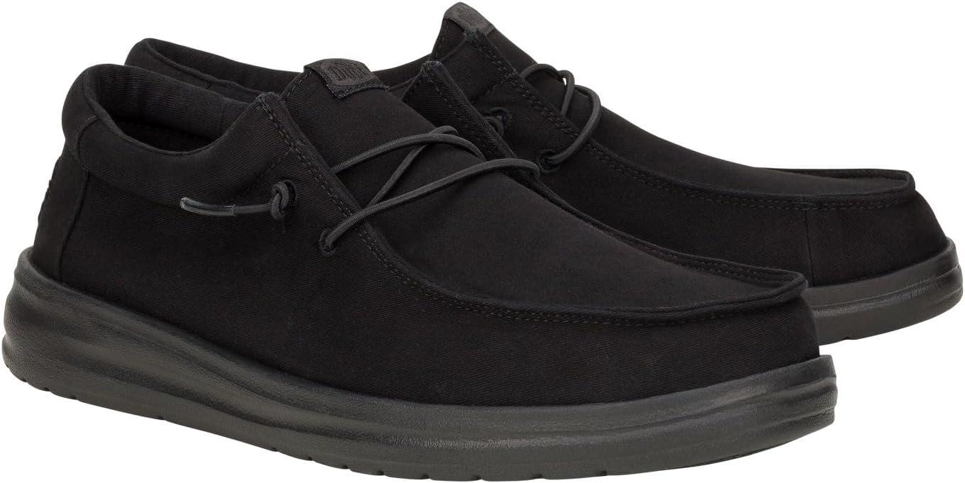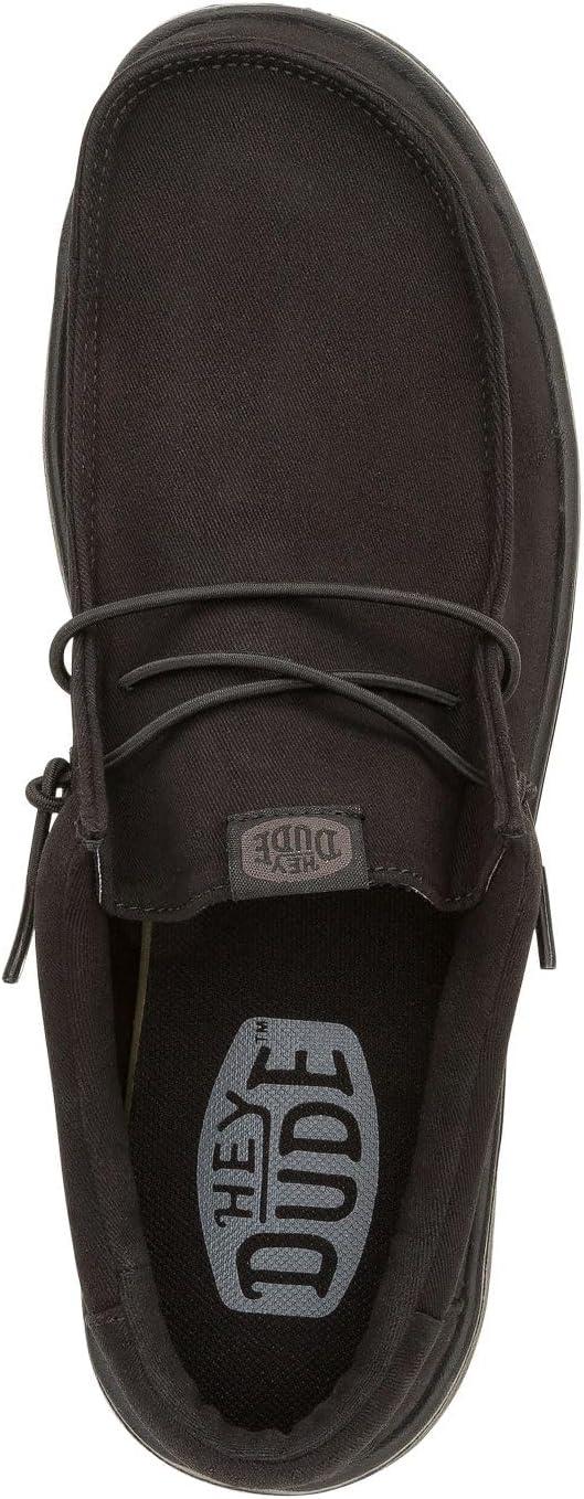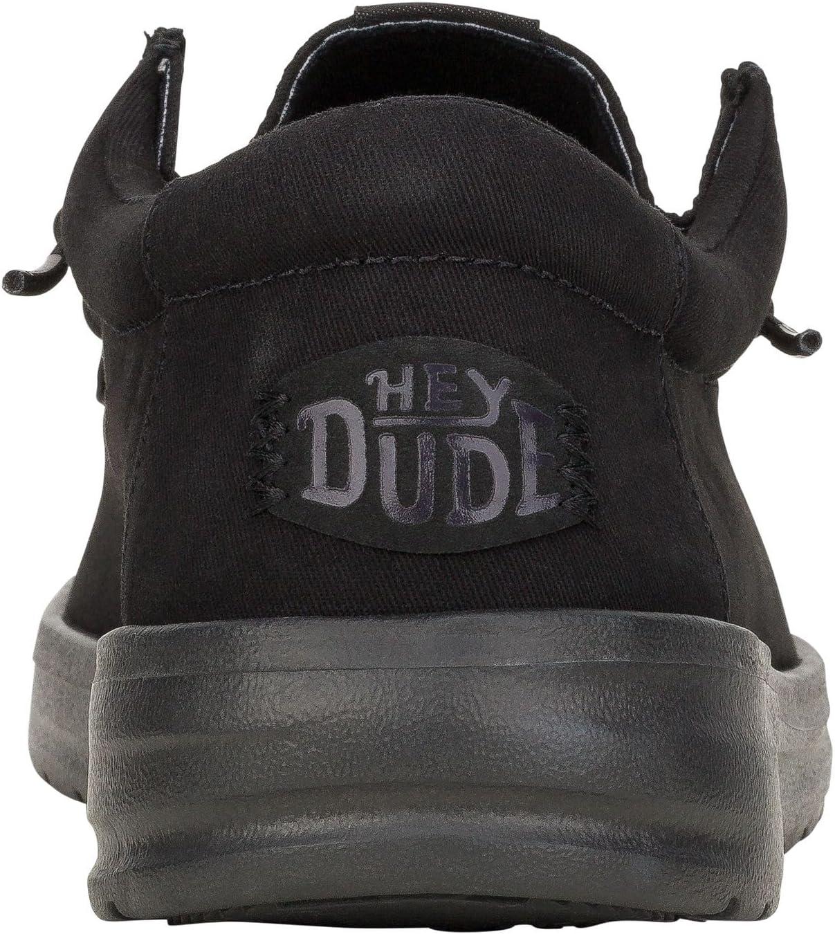 HEYDUDE Men’s Wally Stretch Canvas Loafers | Comfortable Lightweight Slip-On Shoes for Men | Casual Walking, Travel & Everyday Comfort(Mono Black)