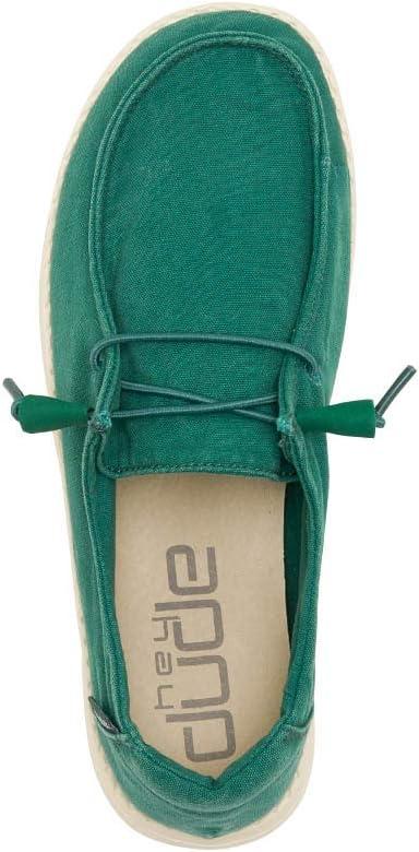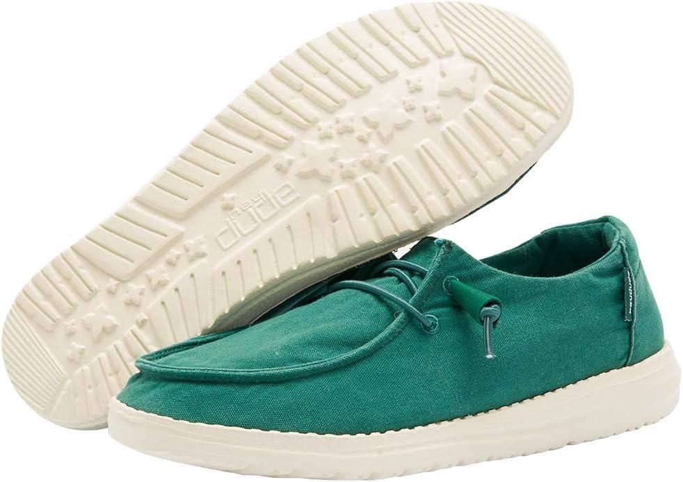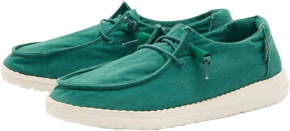 HEYDUDE Wendy Stretch Canvas Women’s Shoes, Women’s Slip-on Loafers, Comfortable & Light-Weight(Green Galapagos)