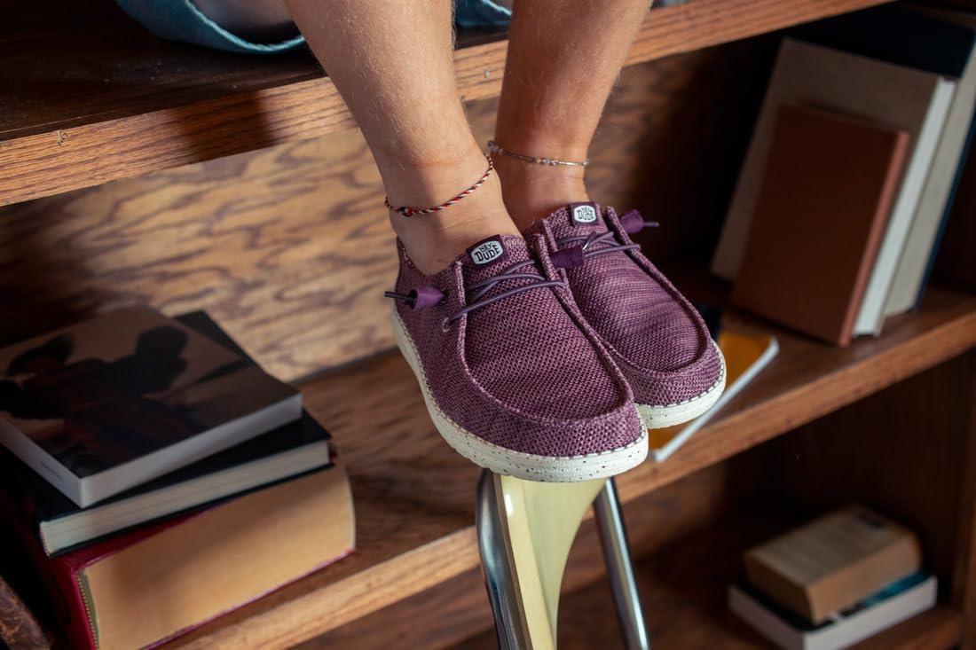 HEYDUDE Wendy Stretch Sox, Women’s Shoes, Women’s Slip-on Loafers, Comfortable & Light-Weight(Burgundy)