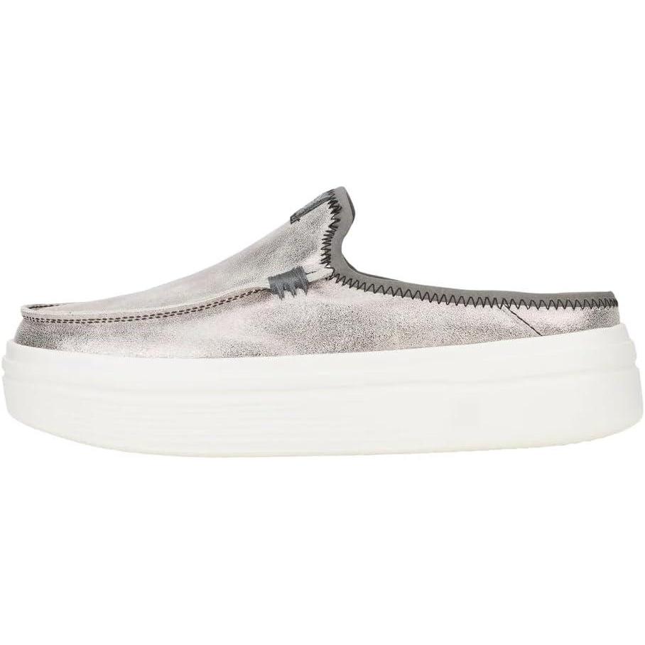 HEYDUDE Women’s Austin Lift Platform Mule | Casual Slip-On Shoes | Lightweight, Comfortable, Stylish Everyday Footwear(Metallic Charcoal)