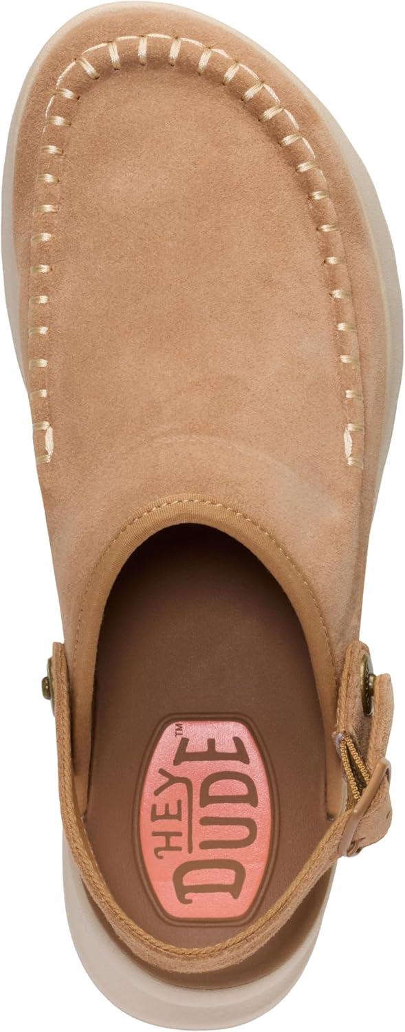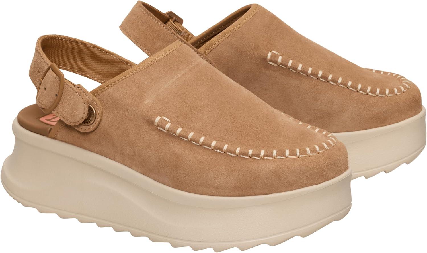 HEYDUDE Women’s Delray Suede Platform Clog | Boho Style Elevated, Casual Slip-On Shoes with Adjustable Strap | Lightweight Comfortable Suede Clogs for Women | Stylish Everyday Footwear(Tan)