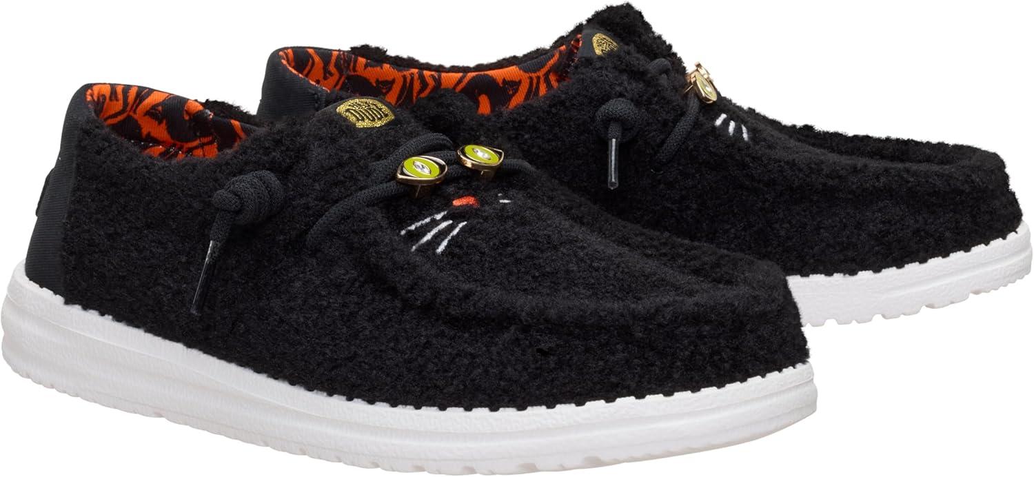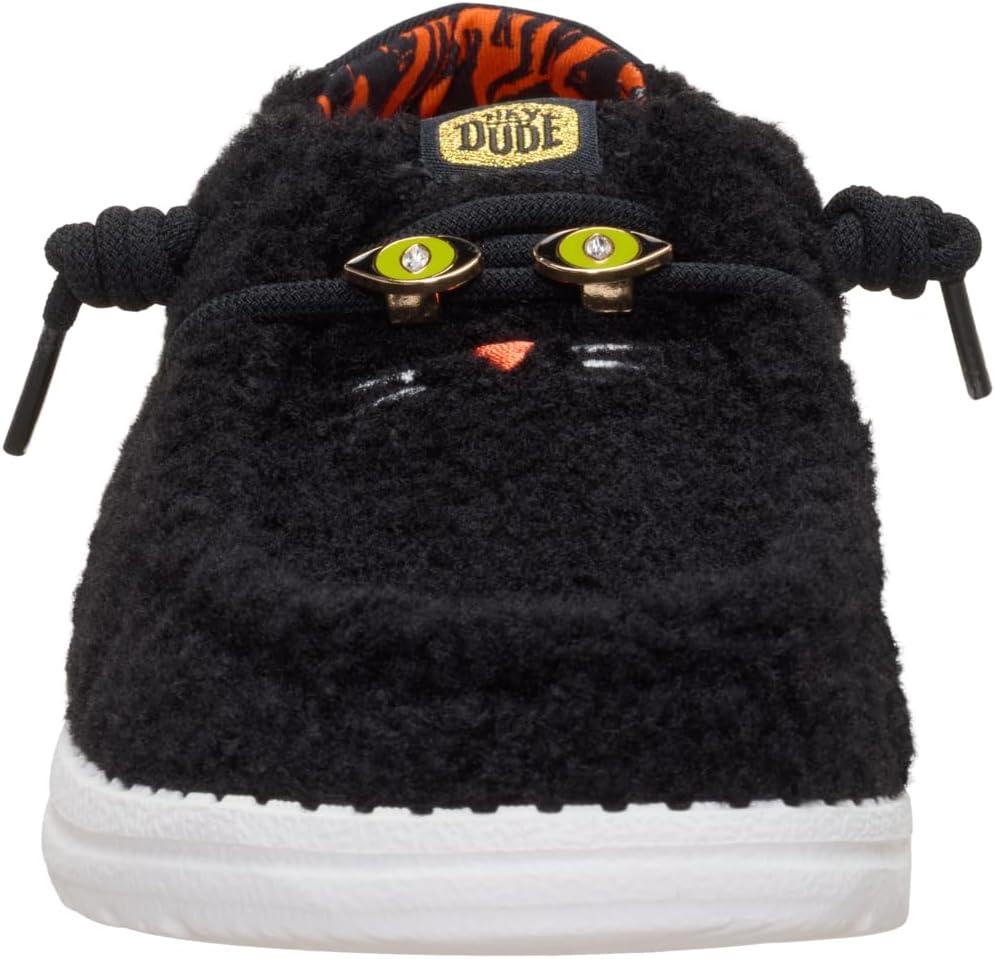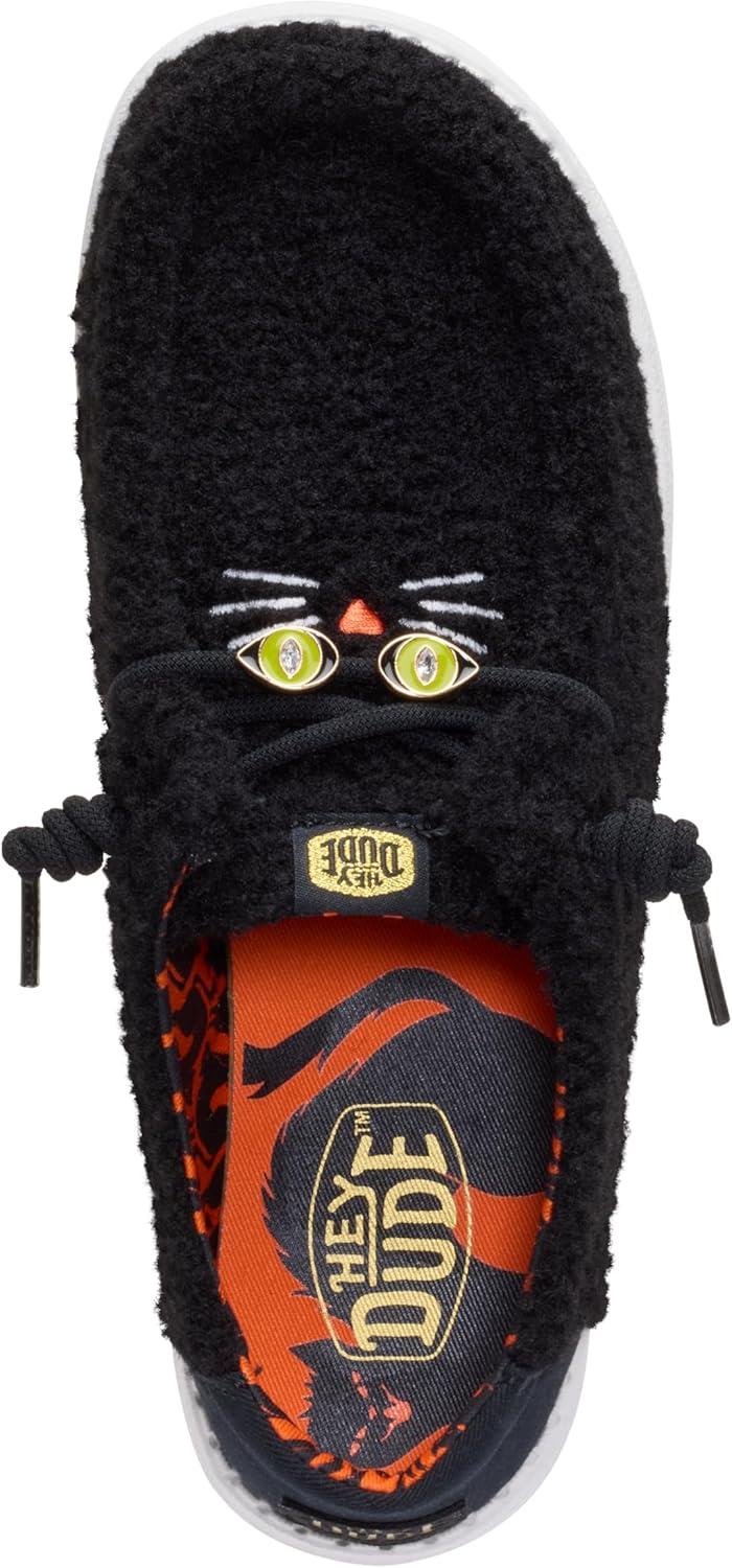 HEYDUDE Women’s Wendy Black Cat | Halloween Shoes for Women, Cozy Sherpa Slip-On Loafers with Cute Cat Ears & Face | Lightweight Comfortable Casual Fall Footwear for Women & Girls(Black)