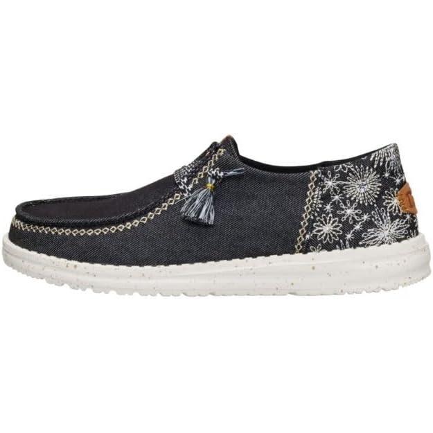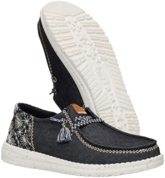 HEYDUDE Women’s Wendy Funk Embroidered Floral Slip-On Loafers | Lightweight Comfortable Easy-On Casual Shoes(Black)