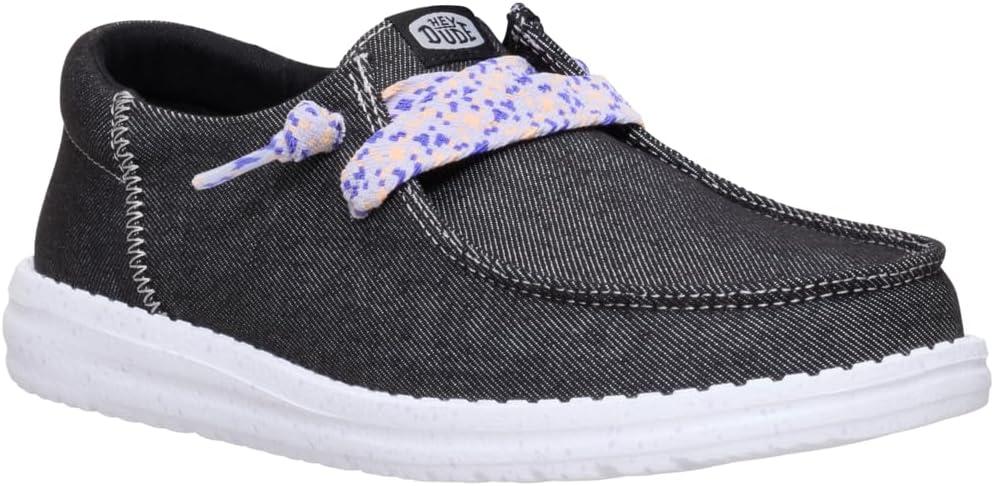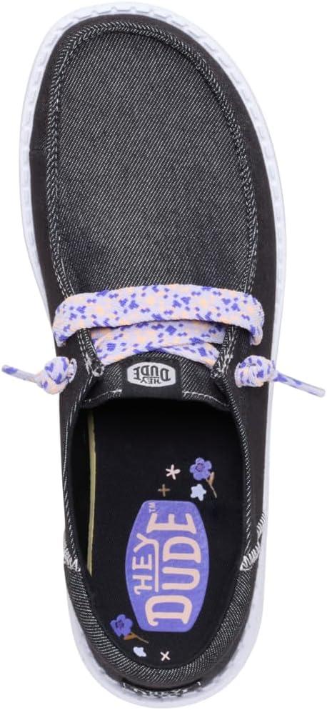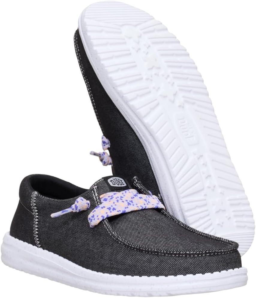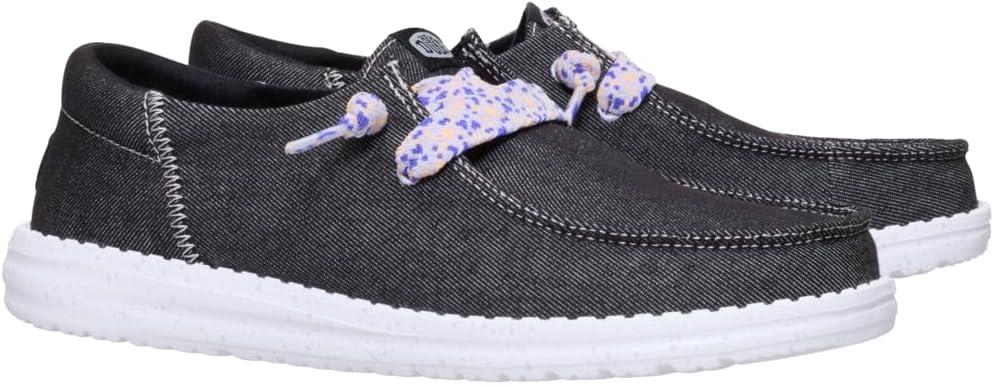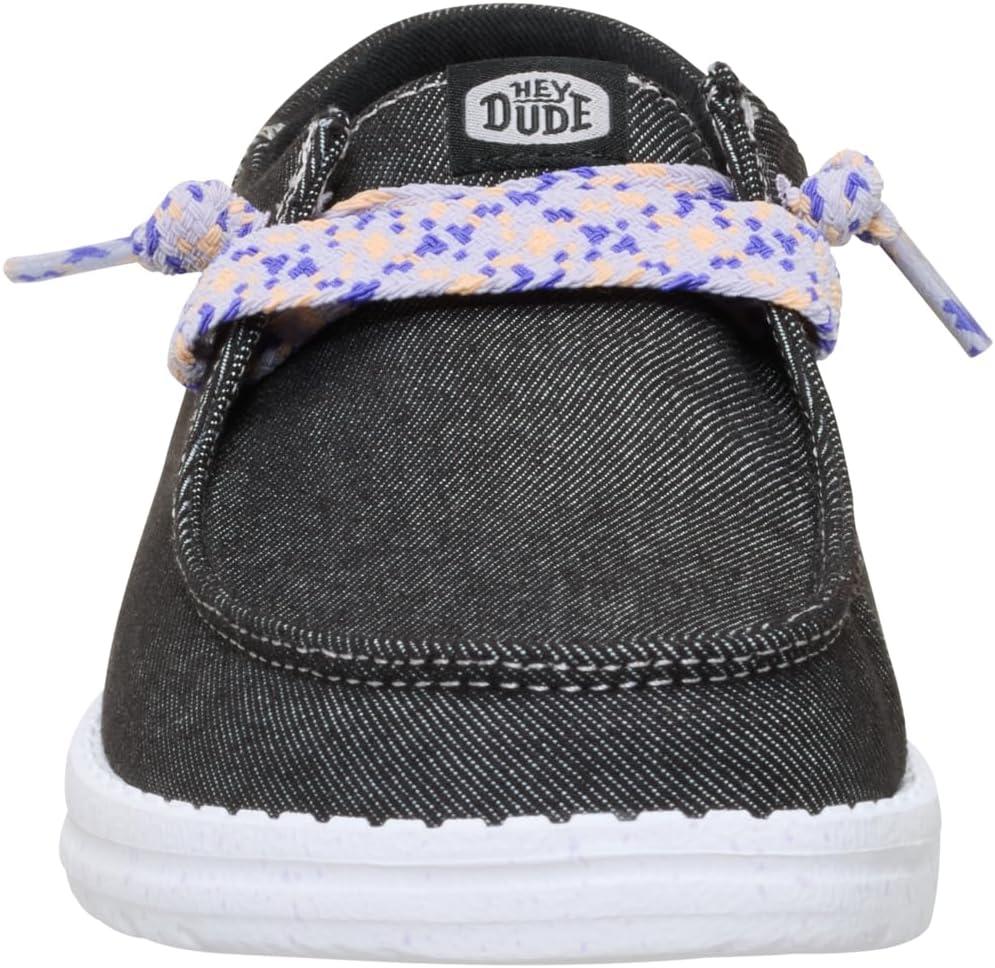 HEYDUDE Women’s Wendy Funk Friendship Lace Slip-On Shoes | Lightweight Comfortable Loafers with Stretch Laces(Black)