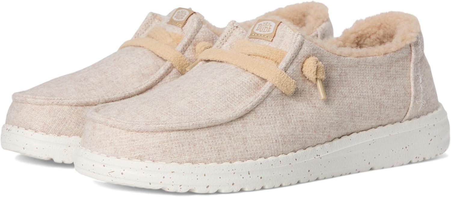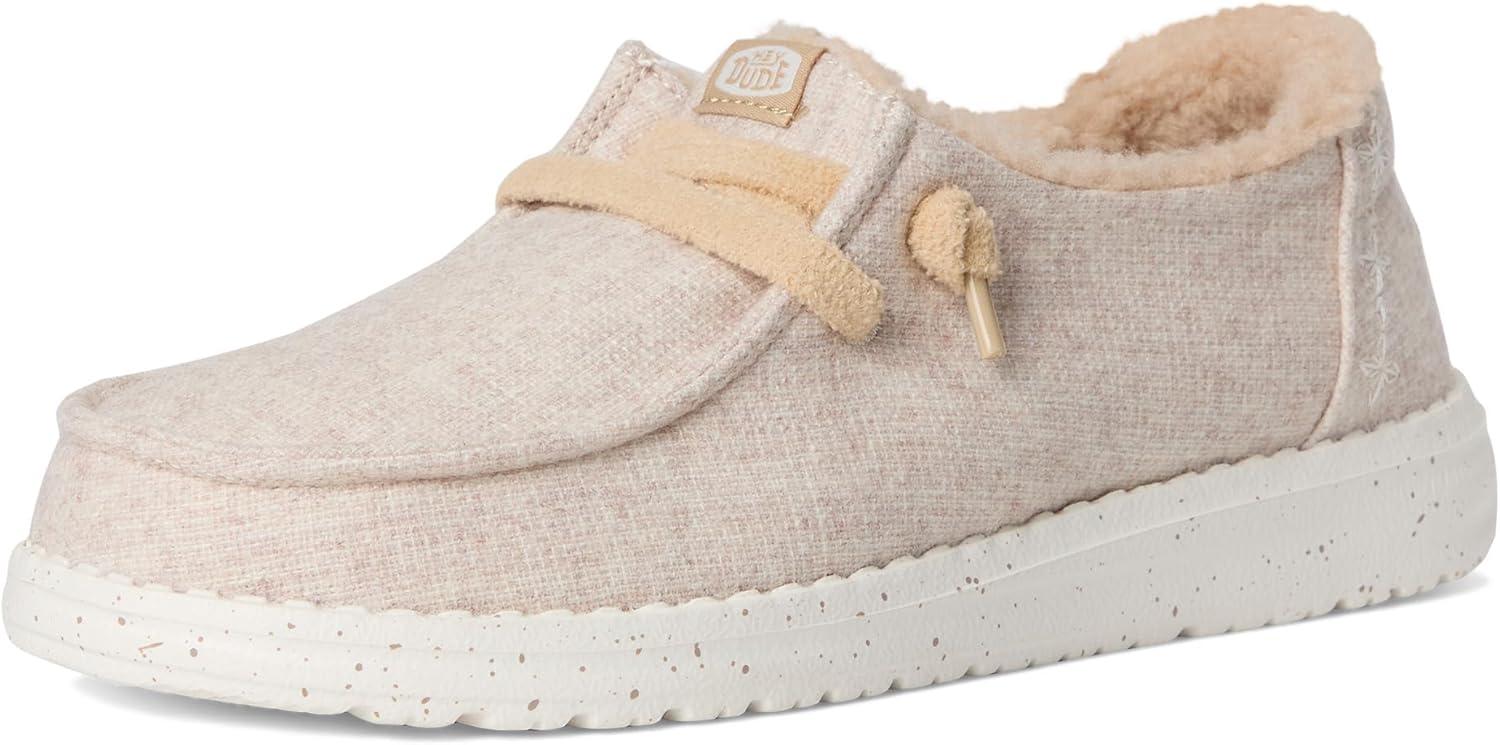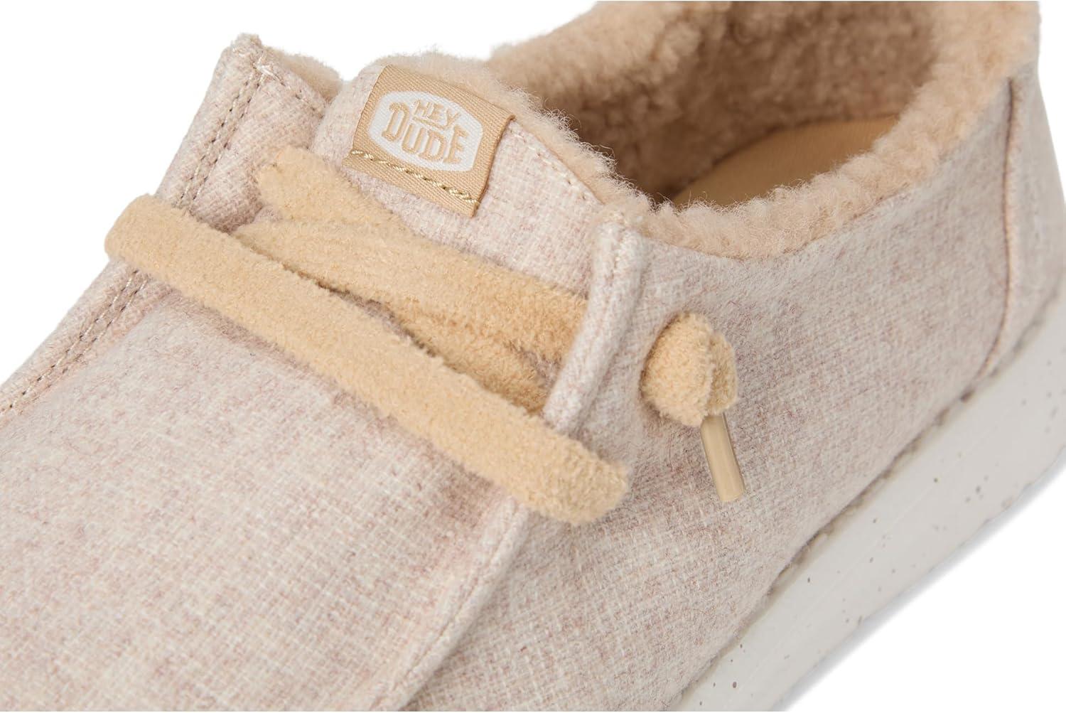 HEYDUDE Women’s Wendy Wool Cozy Slip-On Loafers | Comfortable Lightweight Shoes with Sherpa Lining for All Day Comfort(Oatmeal)